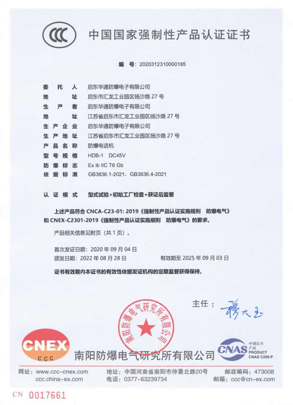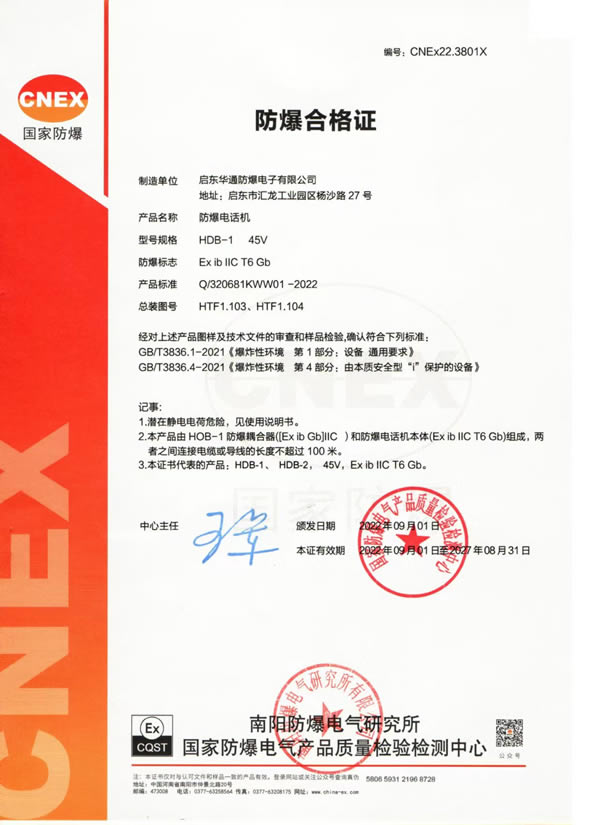 防爆电话机防爆证书